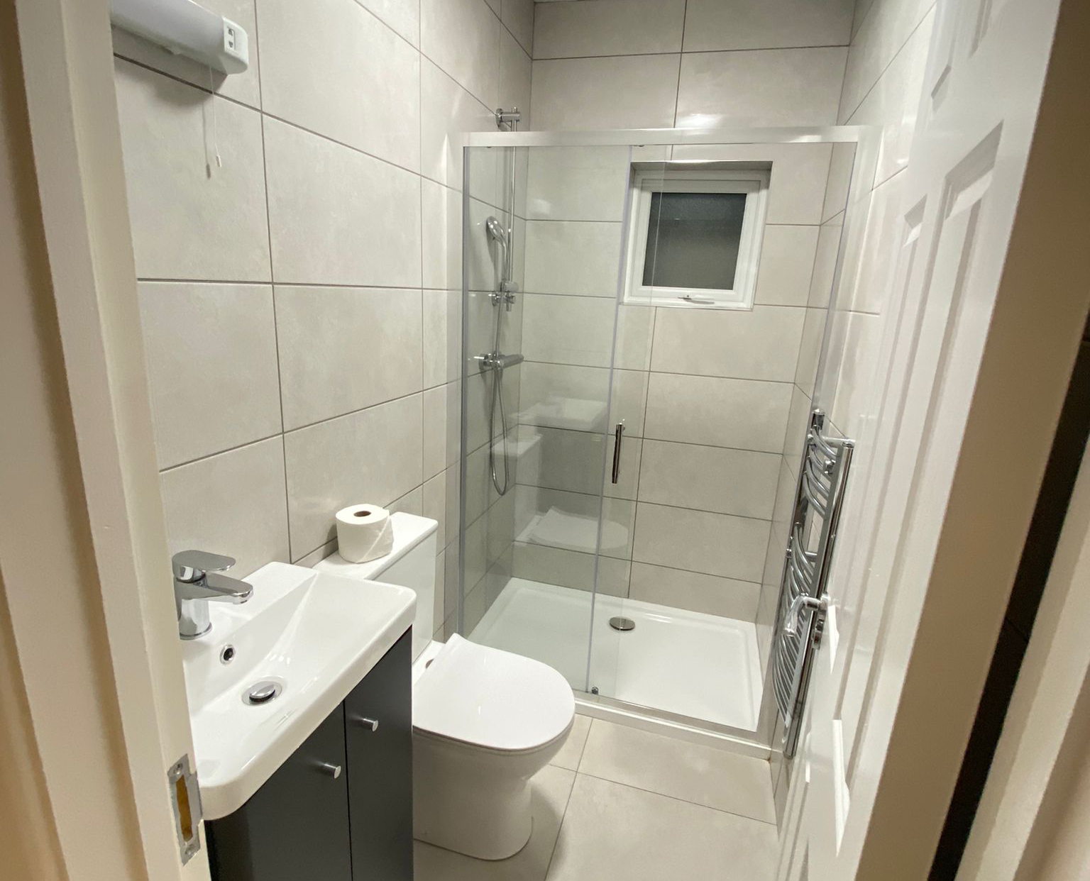 A fully fitted, modern bathroom finished to a high standard, including tiling, sanitaryware, and a clean, comfortable layout designed for everyday use.